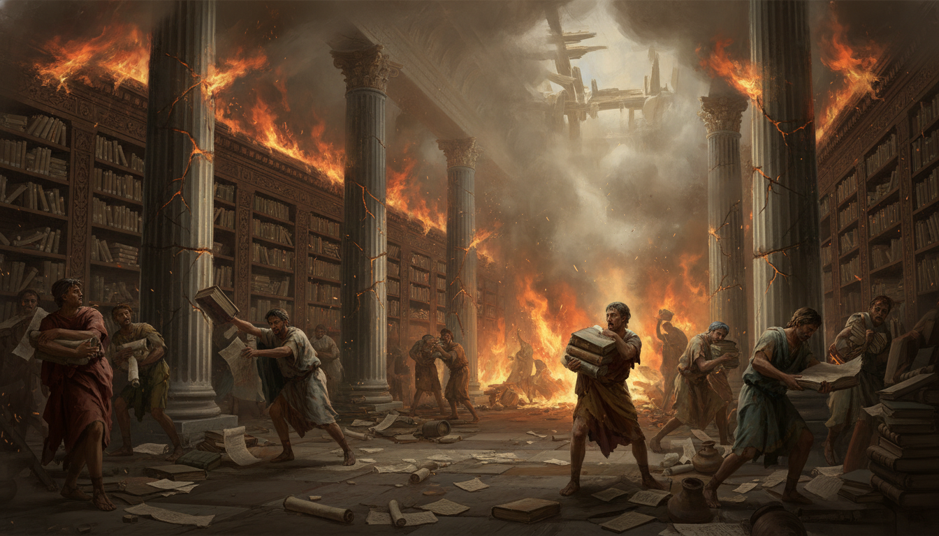 Demetrius, alerted by the distant roar and the acrid smell of smoke, watched in horror from the library’s portico as a pillar of black smoke choked the azure sky. His heart pounded with a terrible dread. This was not merely a fire; it was an existential threat. He rallied his staff, their faces etched with terror and disbelief. “Quickly!” he commanded, his voice raw. “To the scrolls! Save what you can!” But the sheer volume was insurmountable. Even as they formed desperate lines, passing precious bundles from hand to hand, the fire advanced with terrifying speed.